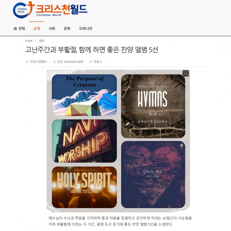 [기획기사] 고난주간과 부활절, 함께 하면 좋은 찬양 앨범 5선(크리스천월드)